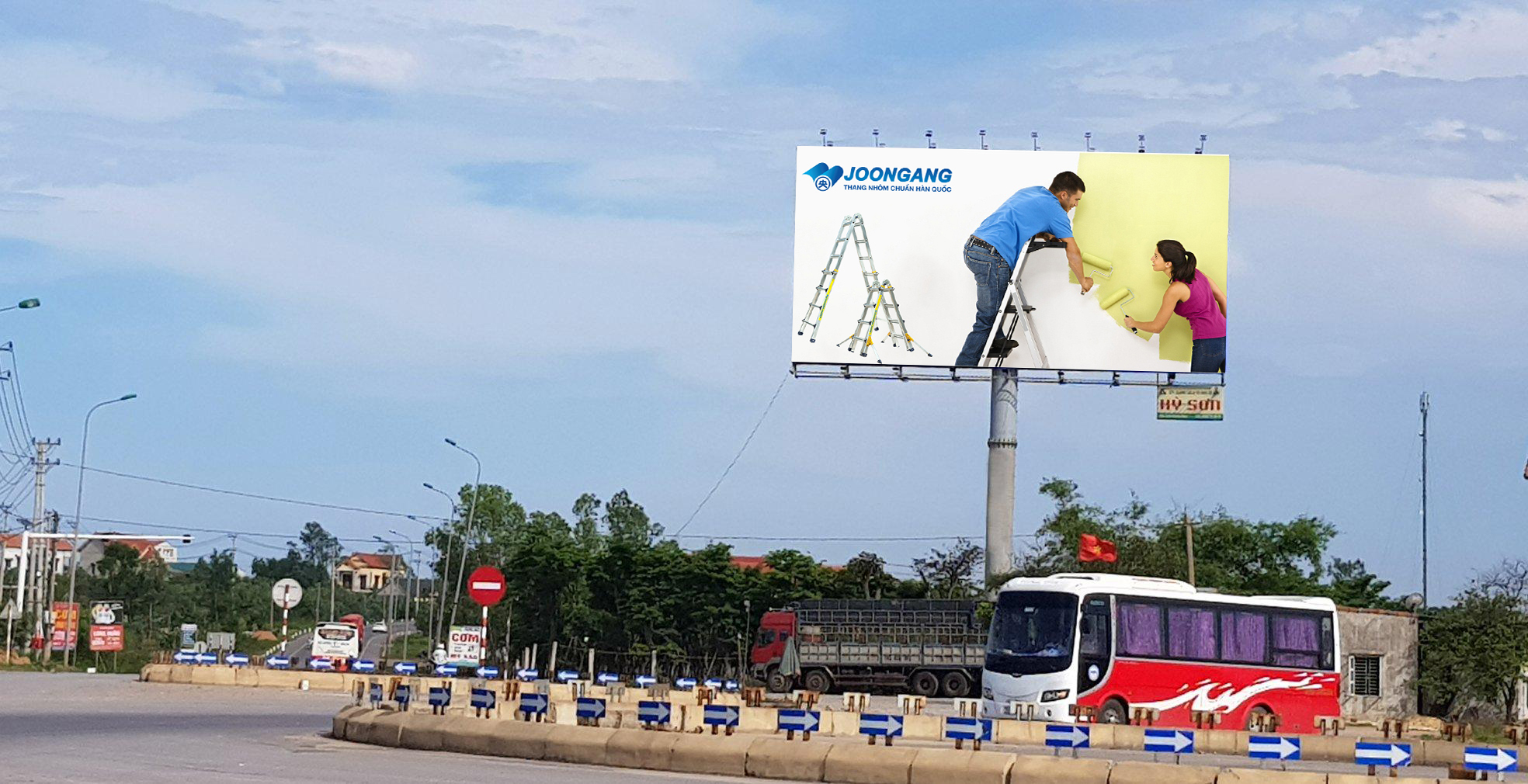Với mong muốn để cho khách hàng nhận diện được thương hiệu thang nhôm Joongang Hàn quốc một cách đều đặn, qua việc quảng cáo trên banner khổ lớn, hình ảnh quảng cáo nhãn hàng thang nhôm Joongang liên tục được lặp đi lặp lại trên các tuyến đường ở mọi thời điểm và nó tác động trực quan người tham gia giao thông đến thông điệp quảng cáo của nhãn hàng, sẽ chủ động khắc sâu vào tâm trí công chúng tham gia giao thông.